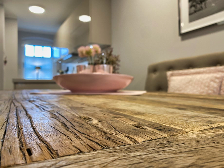 - Hochwertiger Echtholzfußboden in allen Räumen (Fliesen in Bad & WC)